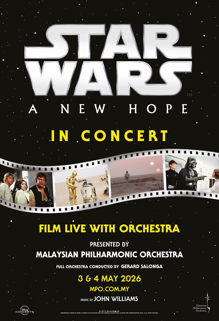 The Malaysian Philharmonic Orchestra presents Star Wars: A New Hope in Concert, a spectacular live-to-film experience featuring the complete screening of Star Wars: A New Hope accompanied by John Williams’ iconic, Oscar®-winning score performed live. Under the baton of Gerard Salonga, this immersive concert takes place at Dewan Filharmonik PETRONAS on 3 May 2026 (3.00 pm) and 4 May 2026 (8.00 pm).